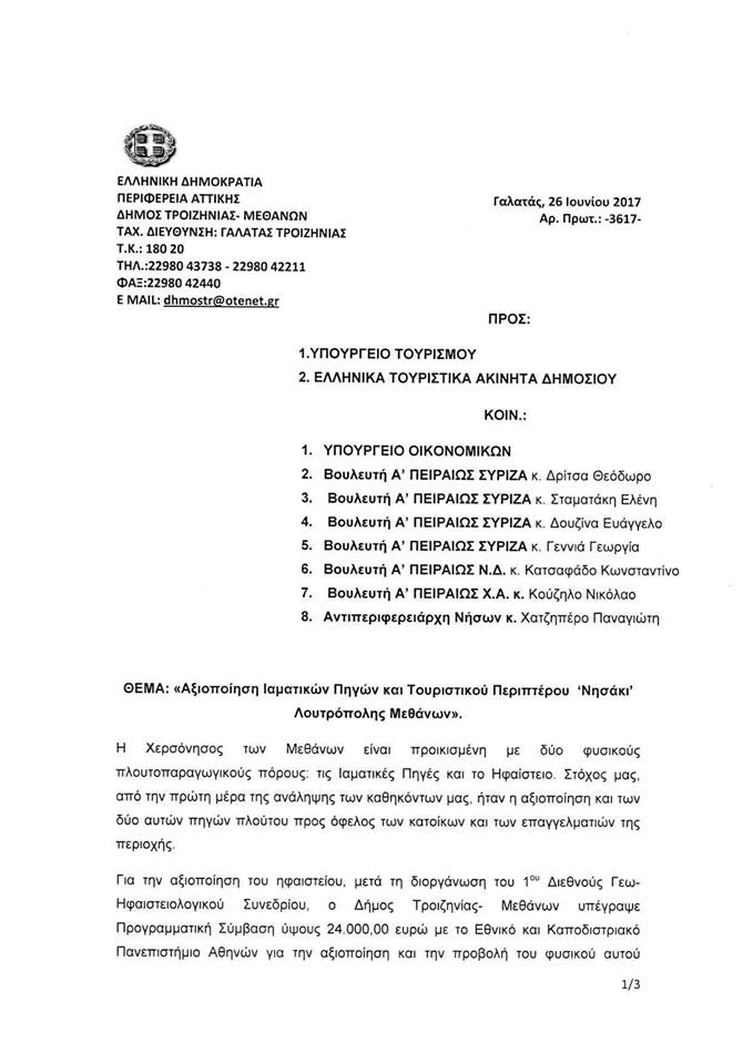 Την Τετάρτη 7 Ιουνίου 2017 στο Δημοτικό Σχολείο Μεθάνων πρόκειται να