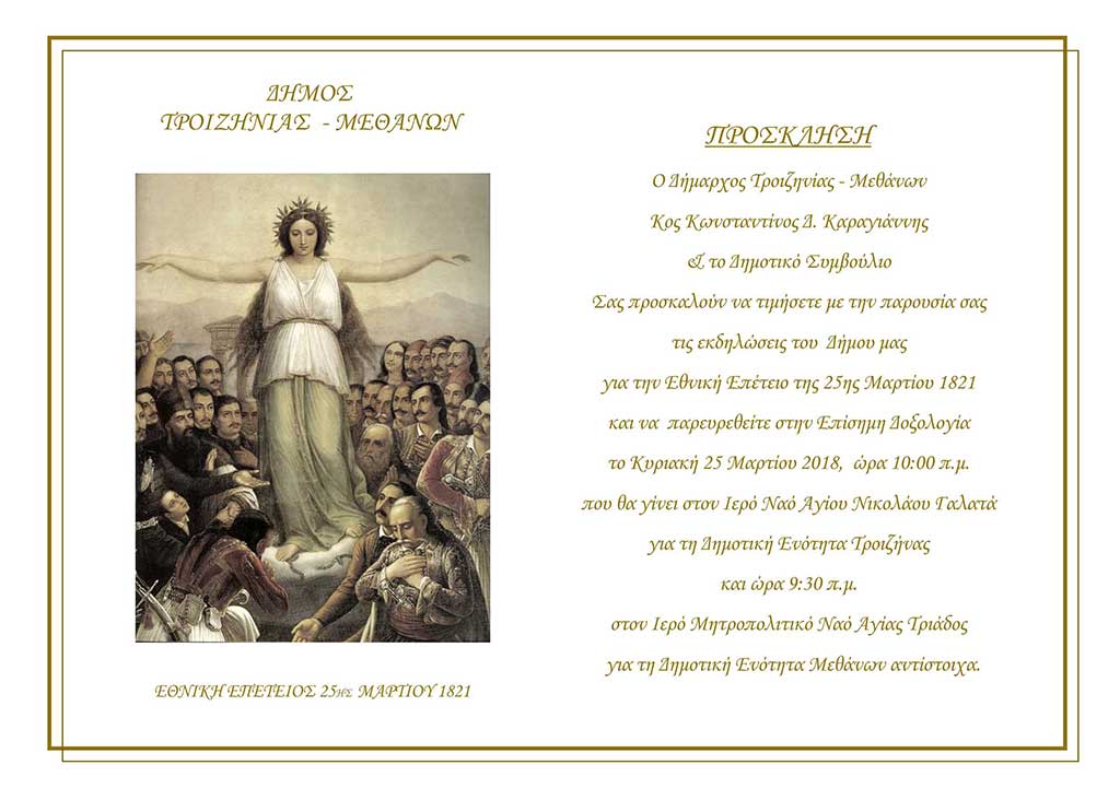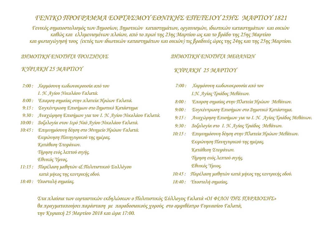 Εκδηλώσεις εορτασμού της Εθνικής Επετείου 25ης Μαρτίου 1821 στη Λουτρόπολη Μεθάνων
