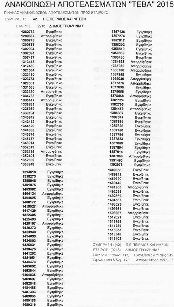 Ο Δήμος Τροιζηνίας-Μεθάνων, που συμμετέχει στην Κοινωνική Σύμπραξη της ΠΕ Πειραιά και ΠΕ Νήσων Περιφέρεια Αττικής στο πλαίσιο του Επιχειρησιακoύ Προγράμματος Επισιτιστικής και Βασικής Υλικής Συνδρομής του Ταμείου Ευρωπαϊκής Βοήθειας για τους Απόρους (ΤΕΒΑ/FEAD) ανακοινώνουν ότι οι ωφελούμενοι του προγράμματος μπορούν να ενημερώνονται για την αποδοχή ή απόρριψη της αίτησής τους :
