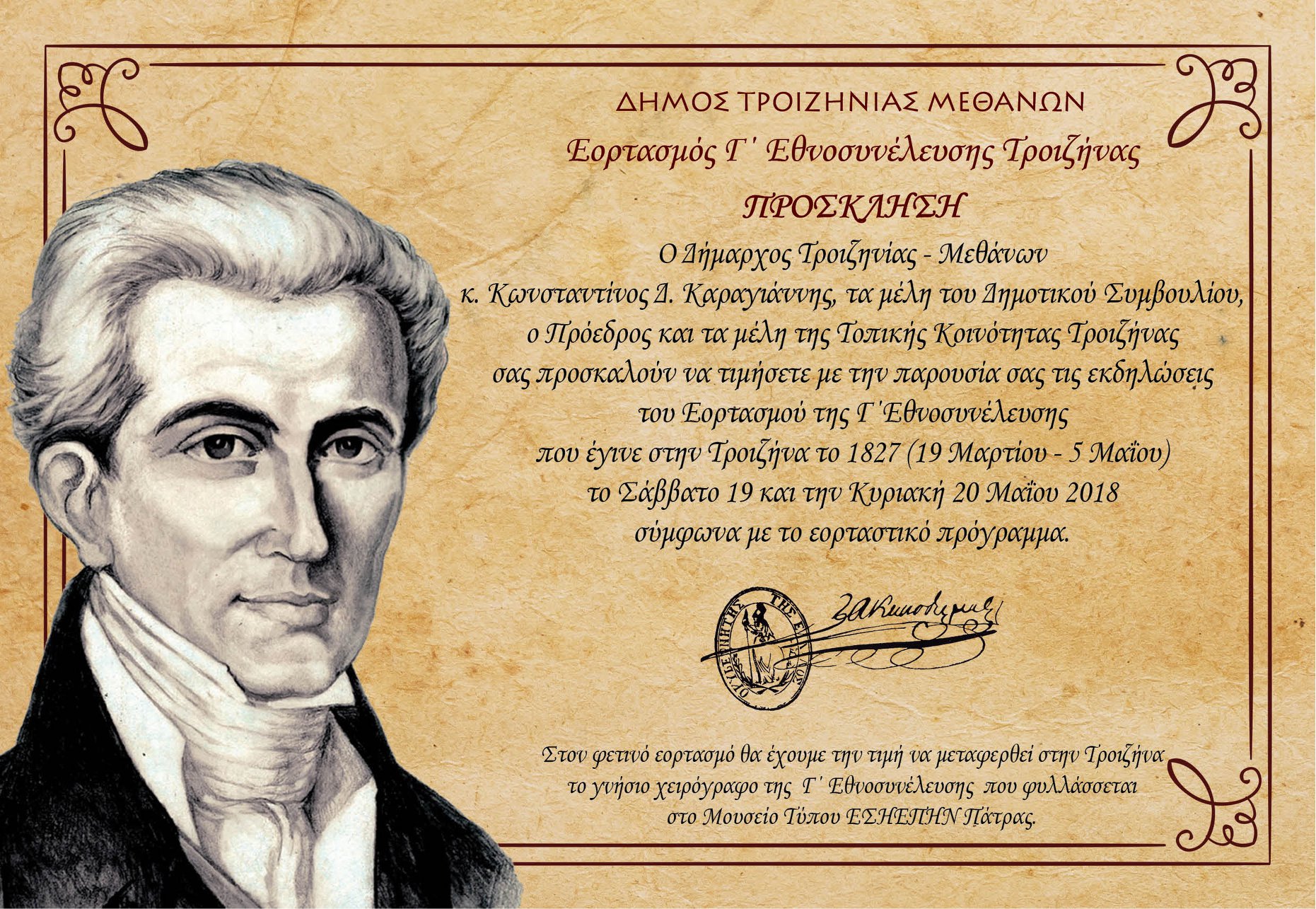 Πράγματι, στις 19 Μαρτίου 1827, άρχισαν στην Τροιζήνα οι εργασίες της Γ’ Εθνοσυνέλευσης των Ελλήνων με πρόεδρο το Γεώργιο Σισίνη, γραμματέα το Ν. Σπηλιάδη, φρούραρχο το Νικήτα Σταματελόπουλο και με τη συμμετοχή περίπου 200 πληρεξουσίων απ’ όλες τις παρατάξεις των αντιπροσώπων των τότε ελεύθερων περιοχών.